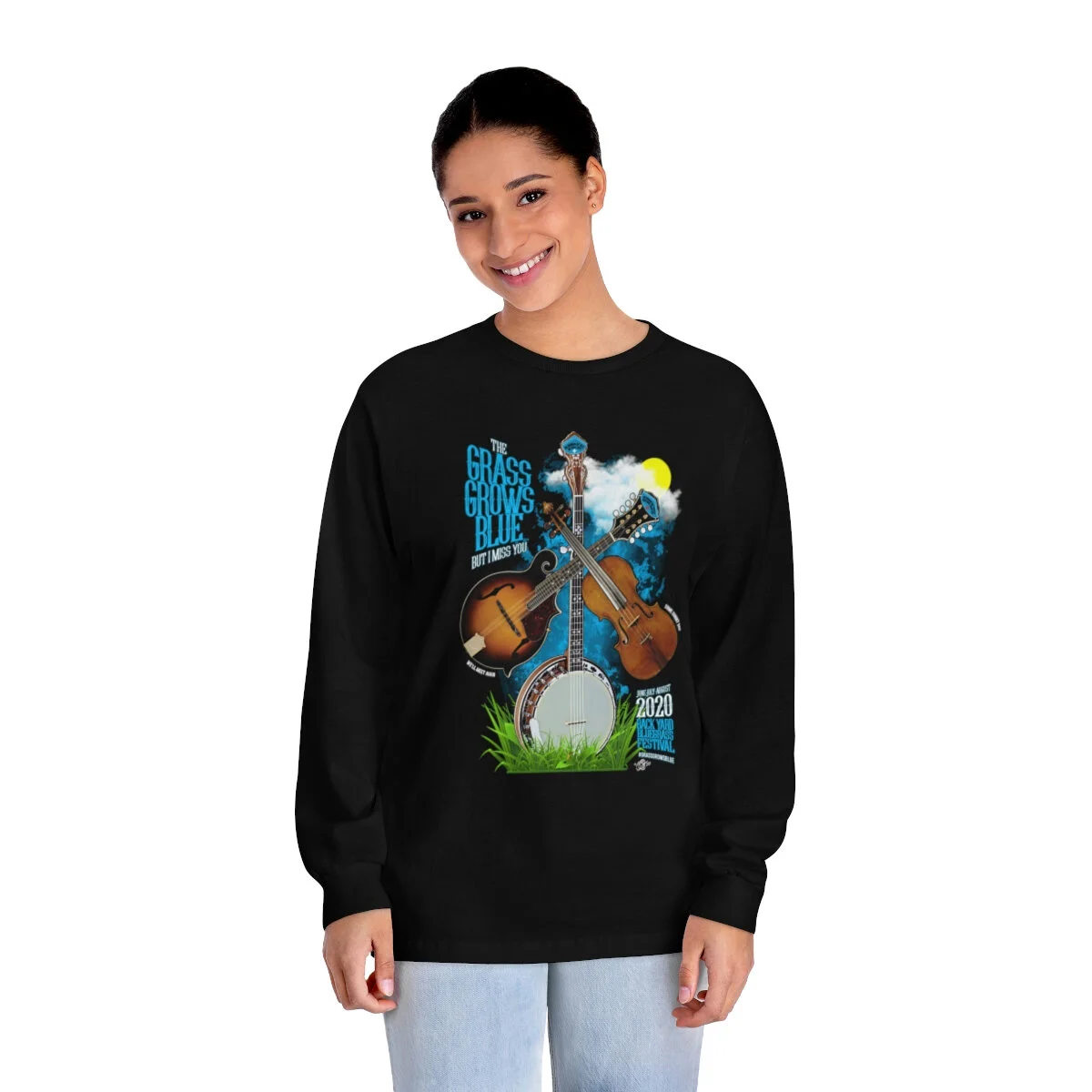 A signature design by Jason Christopher Hackwith, this is the official Grass Grows Blue tee. When we can’t gather safely together at bluegrass festivals and jams, we can still gather in our back yards, porches, living rooms, and dens to share our favorite tunes, songs, and memories. Post your music and videos to social media using the hashtag #grassgrowsblue to join the festival!