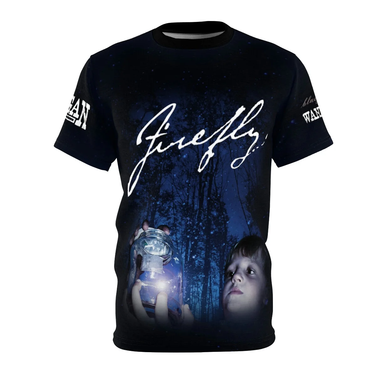 I’m proud to introduce you to WANIGAN's first ever all-over-print tee featuring my Firefly design! The entire tee is absolutely covered with fireflies against a deep, midnight blue.